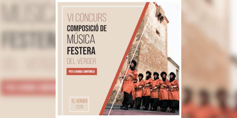 L'Espai de Música Jove del Verger, Tocant i Rodant i l'Ajuntament del Verger conjuntament amb el patrocini de la Federació Valenciana de Dolçainers/res i Tabaleters/res convoquen el I Concurs de Composició de Músic...